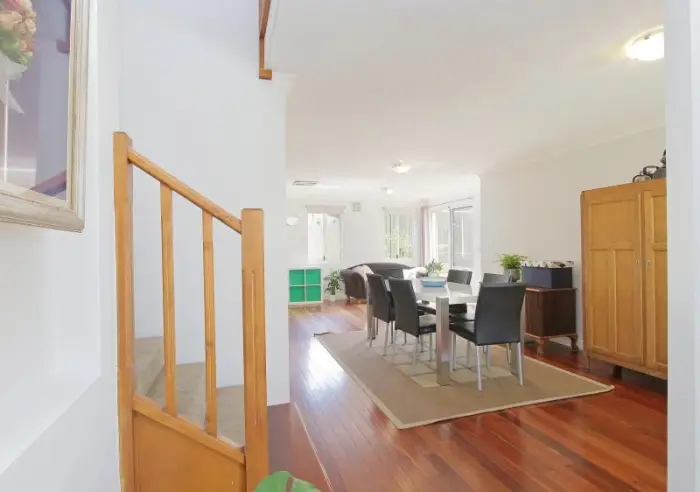 The open dining area opens out to the decked entertaining area plus low maintenance gardens with established plants.
