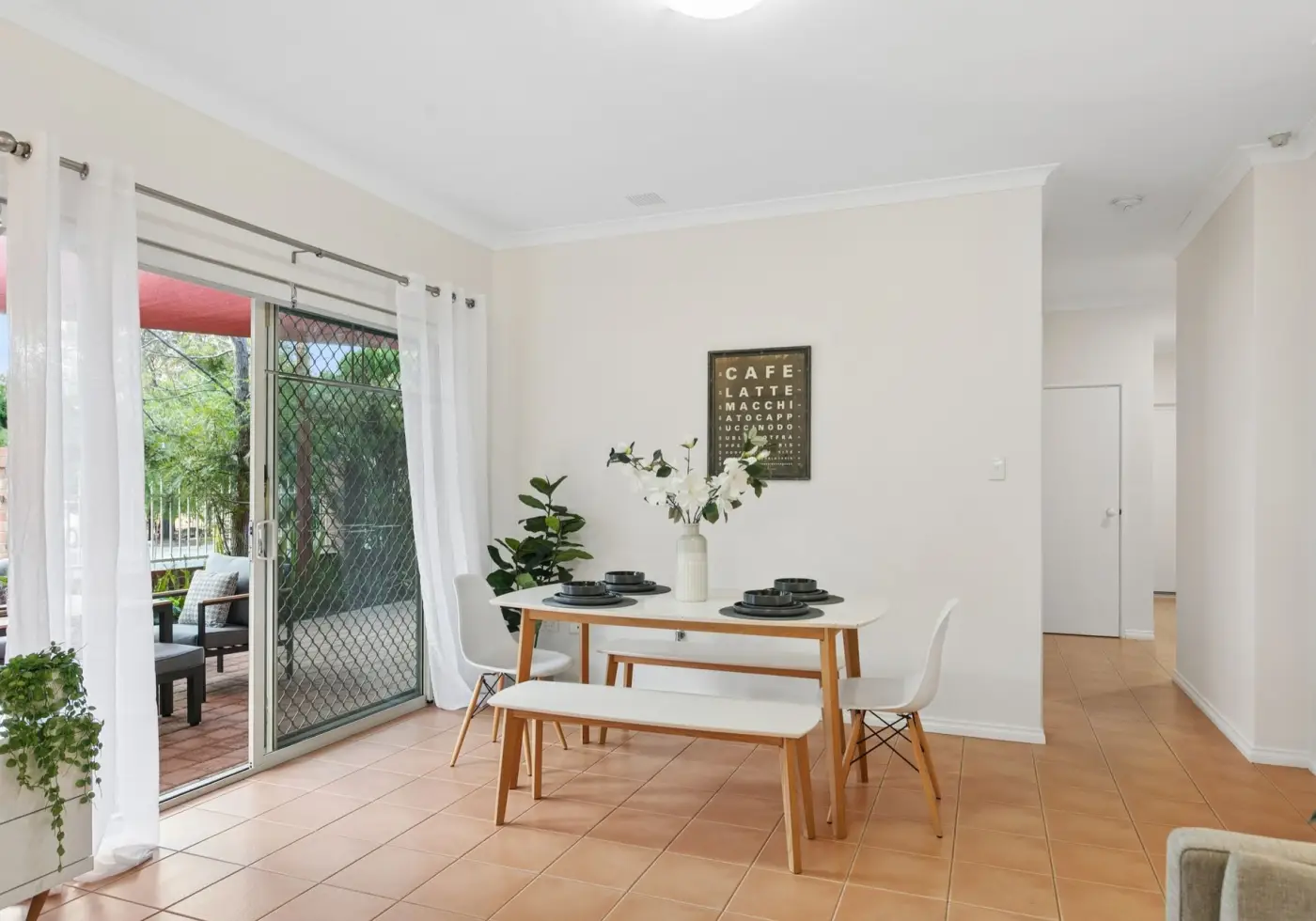 * Private alfresco courtyard with a large shade sail and established gardens, ideal for outdoor entertaining