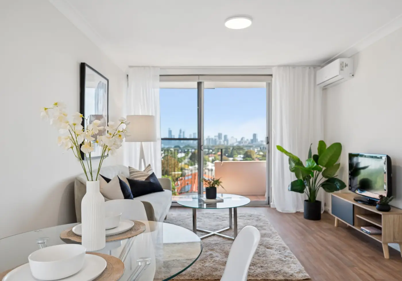 * Open plan living with a near new air conditioner